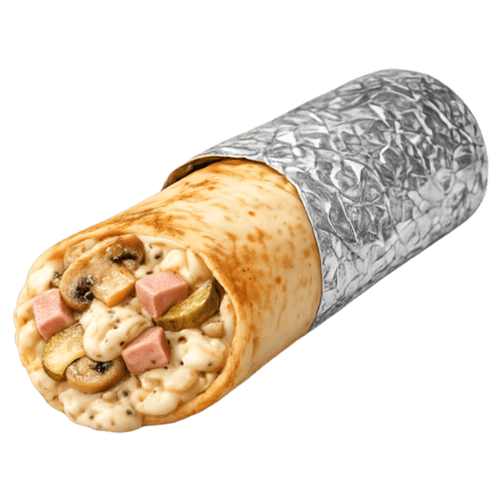 Соус - грибной Состав - пшеничная лепешка, сыр моцарелла, ветчина, шампиньоны жаренные, огурцы маринованные