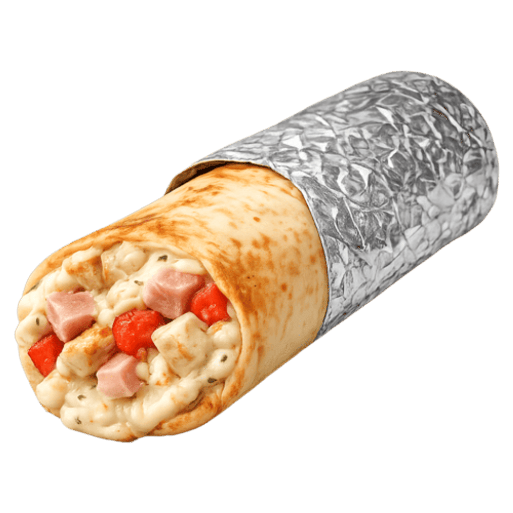 Соус - ранч Состав - пшеничная лепешка, сыр моцарелла, курица, ветчина, томаты
