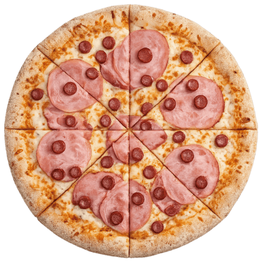 Соус - 1000 островов Состав - грудинка, ветчина куриная, охотничьи колбаски, сыр моцарелла