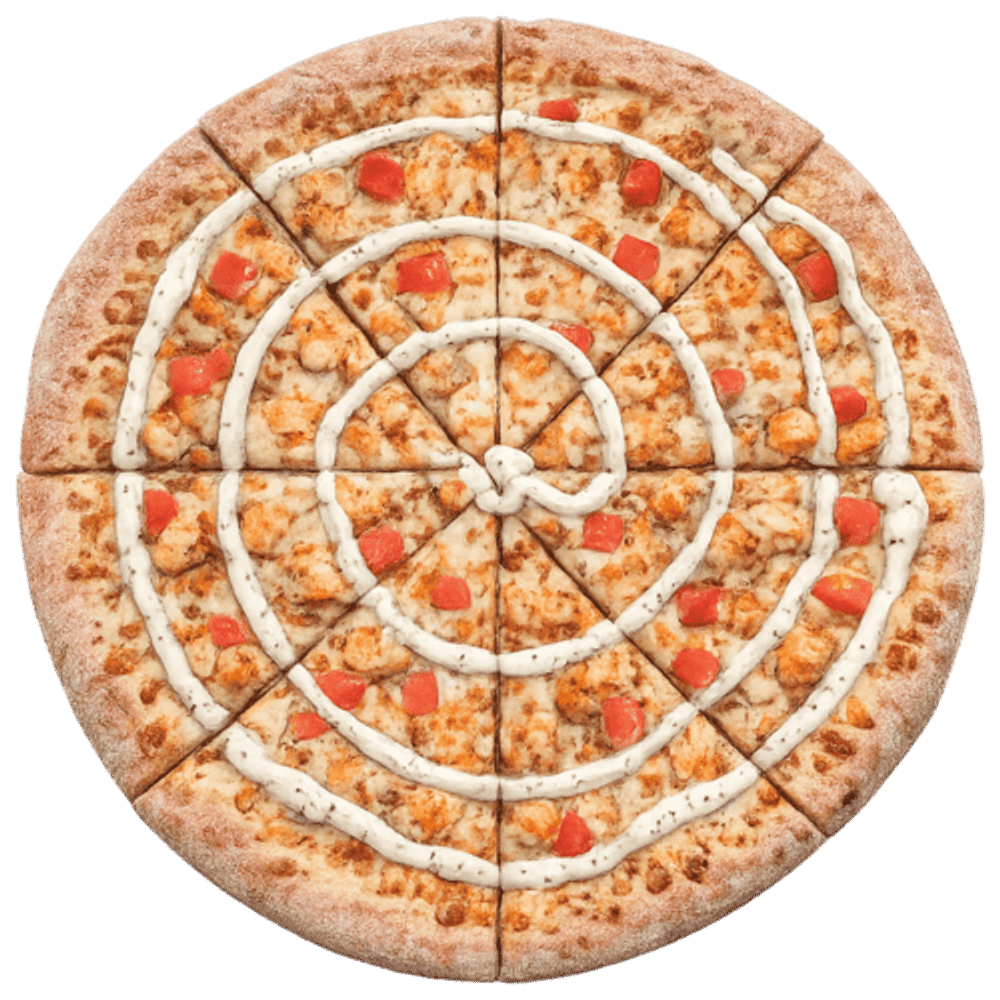 Соус - сырный Состав - курица, сыр моцарелла, томаты, чесночный ранч соус