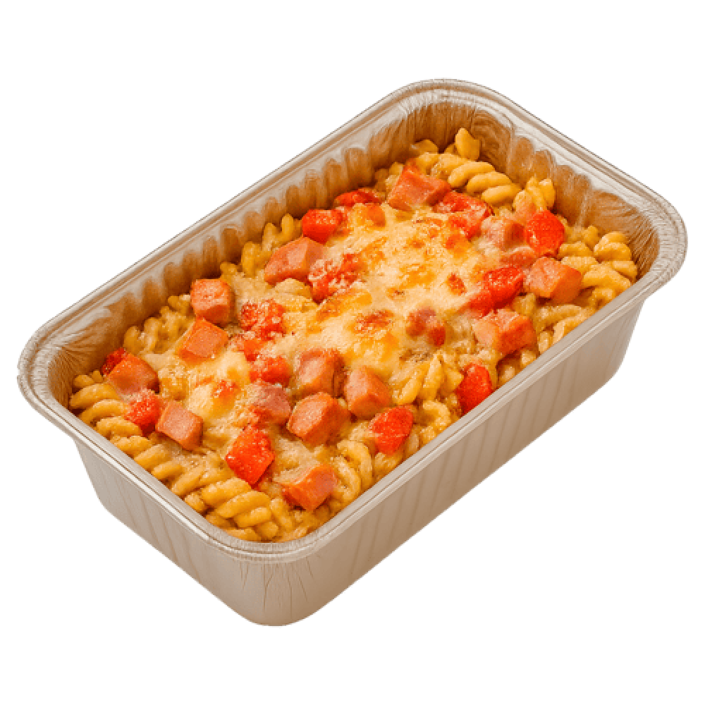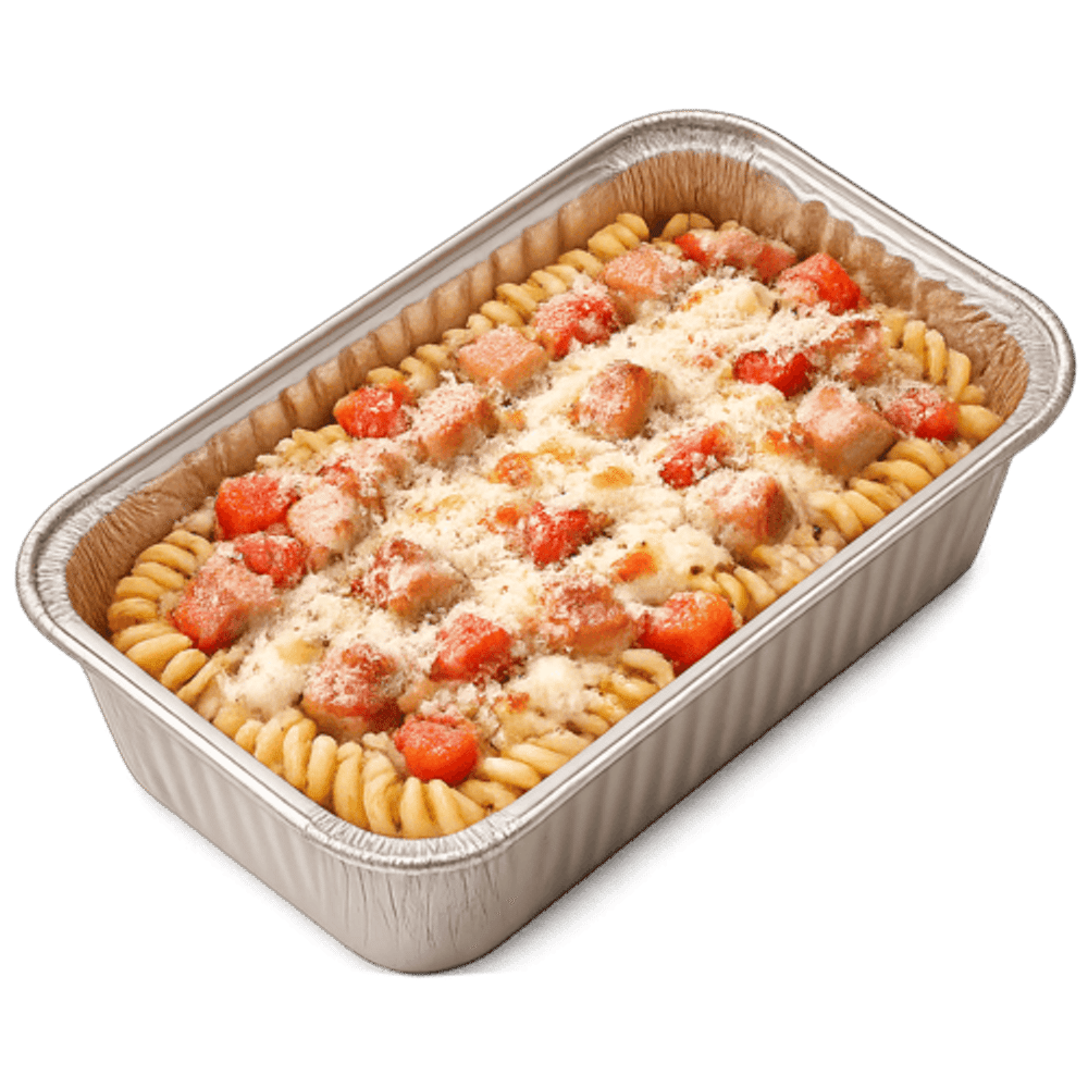 Соус - чесночный Состав - фузилли, грудинка, томаты, сыр моцарелла, сыр пармезан
