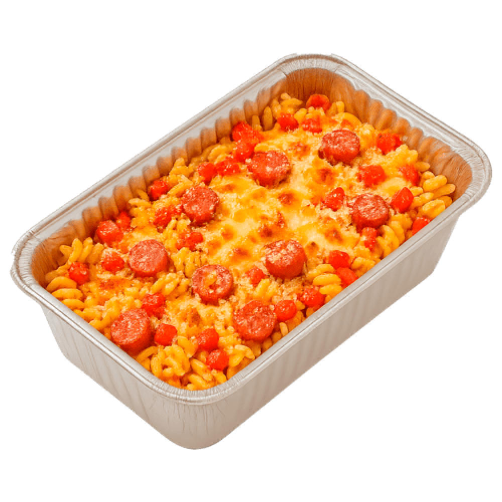 Соус - сырный Состав - фузилли, охотничьи колбаски, перец болгарский, сыр моцарелла, сыр пармезан